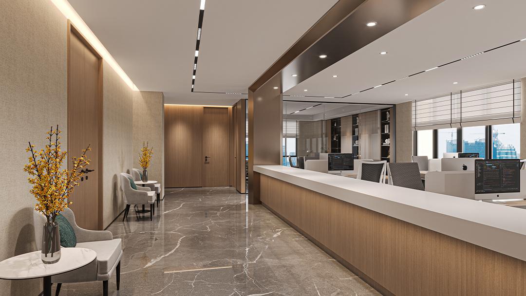 踏入大廳,挑高空間搭配大氣水晶吊燈,盡顯企業(yè)的高端與穩(wěn)重。接待區(qū),以柔和的色調(diào)與質(zhì)感上乘的家具,營造出賓至如歸的氛圍。