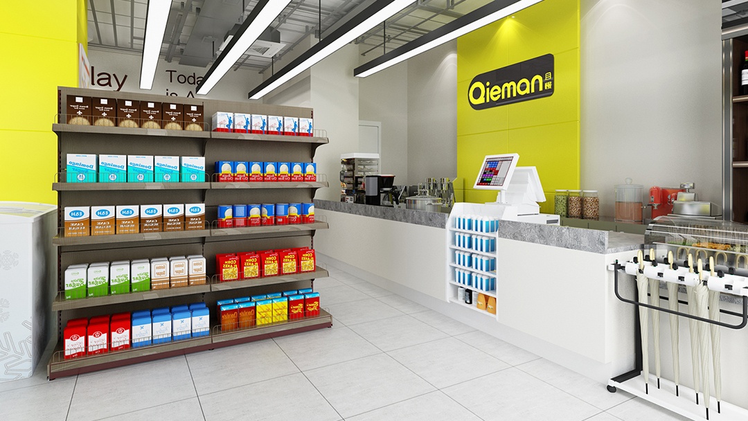 材質(zhì)選擇上,以環(huán)保啞光板材搭配金屬收邊,局部融入玻璃元素,平衡實(shí)用性與設(shè)計(jì)感。燈光方案采用3000K暖光與4000K中性光組合,重點(diǎn)區(qū)域增設(shè)檸檬黃軌道射燈,營(yíng)造溫馨且富有活力的購(gòu)物氛圍,讓每一次選購(gòu)都成為品質(zhì)生活的儀式感體驗(yàn)。