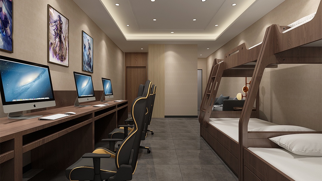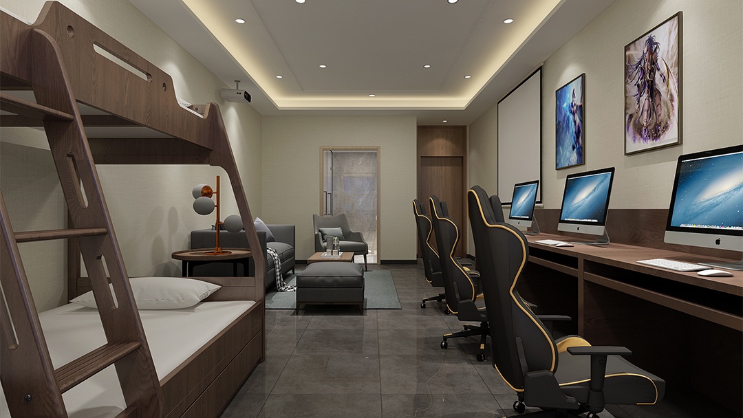 針對杭州電競酒店LOFT裝修設計,博妍裝飾從功能規(guī)劃入手,合理劃分出電競區(qū)、休息區(qū)與衛(wèi)浴區(qū),采用工業(yè)風的設計元素,如裸露的水泥墻面、金屬樓梯和管道,搭配可編程LED燈帶,營造出充滿未來感的電競氛圍。同時,選用符合人體工學的電競椅、定制設備桌以及高性能電腦套裝,提升用戶體驗。在軟裝方面,融入游戲主題墻繪、手辦展示柜和復古游戲機收藏區(qū),滿足年輕人對個性化和社交互動的需求。