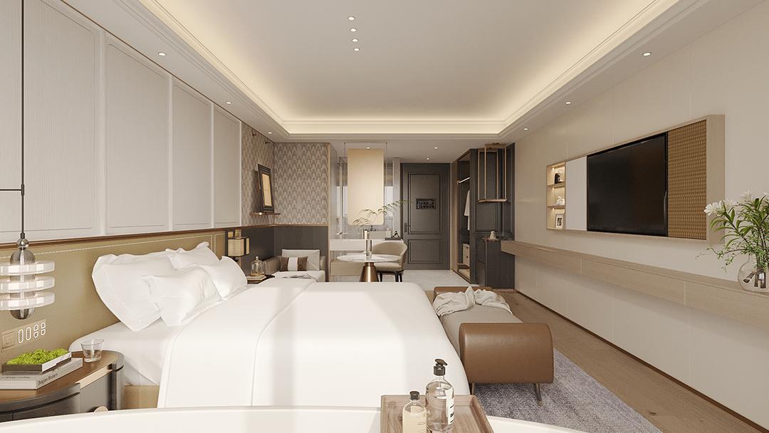 杭州設(shè)計師酒店設(shè)計裝修,本案以“城市留白”為設(shè)計哲學(xué),將西湖的靜謐感融入空間。通過無主燈磁吸軌道系統(tǒng)與大面積微水泥墻面的運用,構(gòu)建出柔和的光影層次。定制懸浮式家具與隱藏式收納系統(tǒng),實現(xiàn)功能與美學(xué)的統(tǒng)一。整體以低飽和度色彩為基調(diào),局部點綴金屬與石材細(xì)節(jié),營造出兼具東方禪意與當(dāng)代極簡的沉浸式旅居體驗。