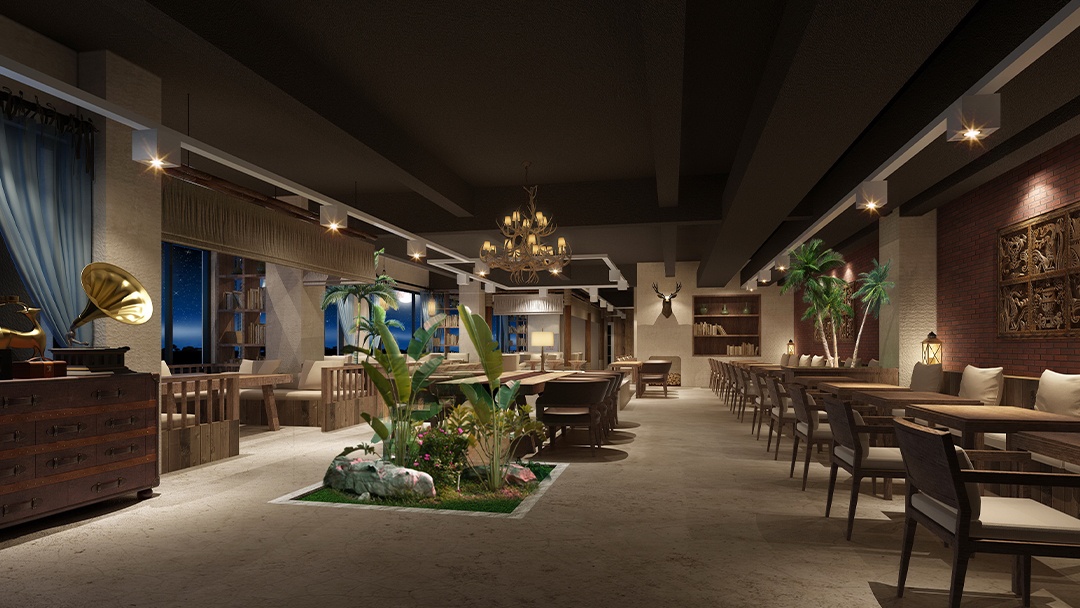 • 空間利用率優(yōu)化:設(shè)置模塊化組合家具適應(yīng)不同規(guī)模的社交場景,吧臺與臨窗區(qū)采用高低臺面實(shí)現(xiàn)視覺通透性。
