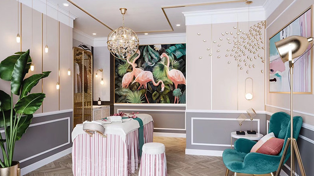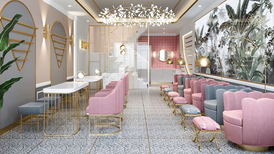 在杭州,這座兼具時尚基因與自然靈氣的城市,我們以INS風(fēng)美學(xué)為靈感,將低飽和度粉色作為空間主調(diào),搭配生機盎然的綠植點綴,打造一處治愈感與高級感并存的指尖藝術(shù)空間。墻面,采用柔霧粉藝術(shù)涂料,搭配啞光白與淺灰家具,營造溫柔而不甜膩的視覺層次;弧形沙發(fā)、吊燈與幾何鏡面裝置,強化空間的輕盈感與現(xiàn)代趣味。綠植,成為空間呼吸的靈魂——從入口處的龜背竹墻到護理區(qū)的蕨類微景觀,再到窗邊的琴葉榕列陣,讓自然氣息滲透每個角落。智能補光美甲臺與無主燈設(shè)計結(jié)合,確保光線柔和均勻,讓每一次指尖創(chuàng)作都成為享受。在這里,杭州的精致與INS風(fēng)的松弛完美交融,為都市女性提供一處逃離喧囂、沉浸美學(xué)的治愈驛站。