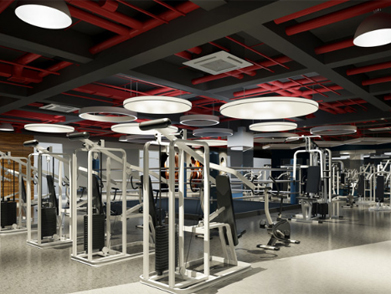 功能分區(qū)明確:將有氧區(qū)、力量區(qū)、自由訓(xùn)練區(qū)、休息區(qū)等按使用頻率與關(guān)聯(lián)性劃分,避免交叉干擾。例如,高強(qiáng)度訓(xùn)練區(qū)可設(shè)置在空間深處,減少對入門用戶的視覺壓迫。