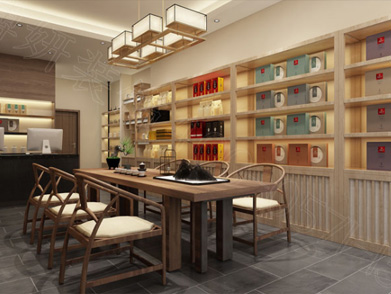 茶文化展示區(qū):通過開放式展架陳列茶器、茶禮,結(jié)合互動式品茶臺,增強(qiáng)空間的文化附加值。