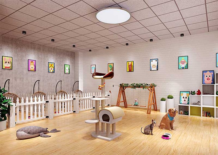 2、互動區(qū)域:設置公共活動區(qū),配備攀爬架、隧道等玩具,每日定時開放供寵物社交;寄養(yǎng)間內設置隱藏式攝像頭,方便主人遠程查看寵物狀態(tài)。