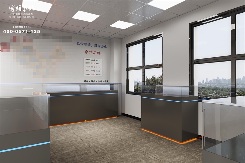 照明設(shè)計:采用分層照明策略,基礎(chǔ)照明選用LED平板燈,重點區(qū)域(如接待臺、展示墻)增加軌道燈或射燈,既滿足功能需求又降低能耗。