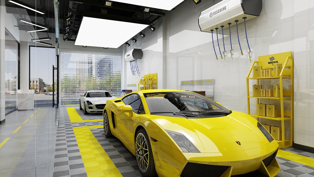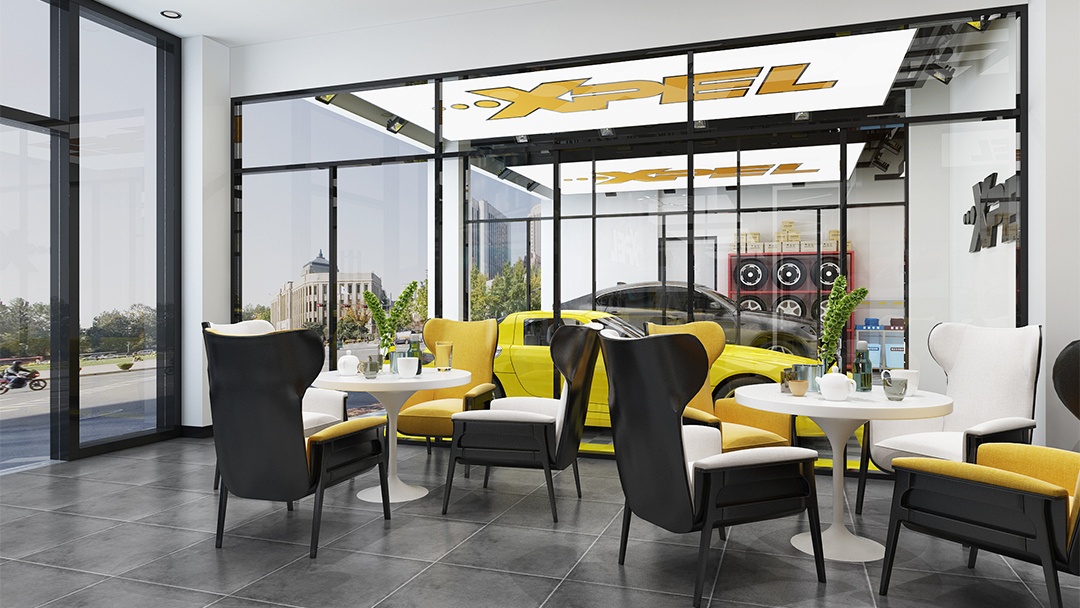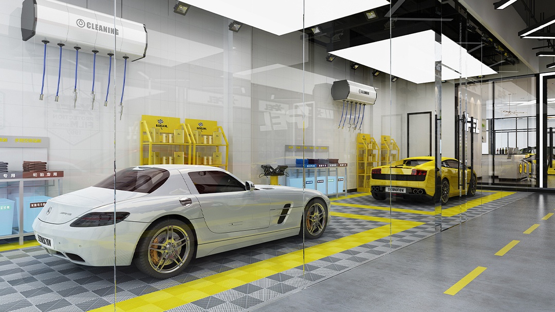 杭州汽車貼膜專營店裝修設(shè)計,打造沉浸式貼膜體驗空間。入口設(shè)動態(tài)色溫光柱陣列,呈現(xiàn)200+膜料在不同光照下的色彩變化。施工區(qū)采用十萬級無塵標(biāo)準(zhǔn),配備垂吊式膜料架與智能裁膜工作臺,墻面嵌入紫外線強度監(jiān)測屏??蛻艨赏ㄟ^互動色墻進行虛擬改色預(yù)覽,定制區(qū)設(shè)材質(zhì)顯微鏡與耐久度測試儀。整體以科技白與金屬灰為基調(diào),將專業(yè)工藝轉(zhuǎn)化為可感知的視覺敘事。