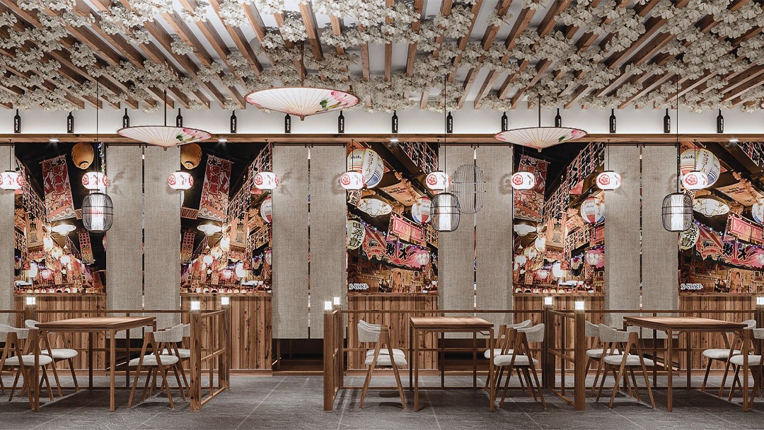 • 材質(zhì)與氛圍:選用原木、竹編、素色涂料等天然材料,搭配暖黃燈光與庭院枯山水造景,營造靜謐雅致的用餐環(huán)境。