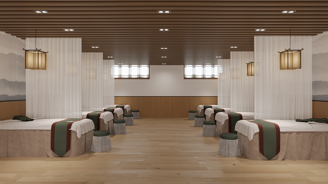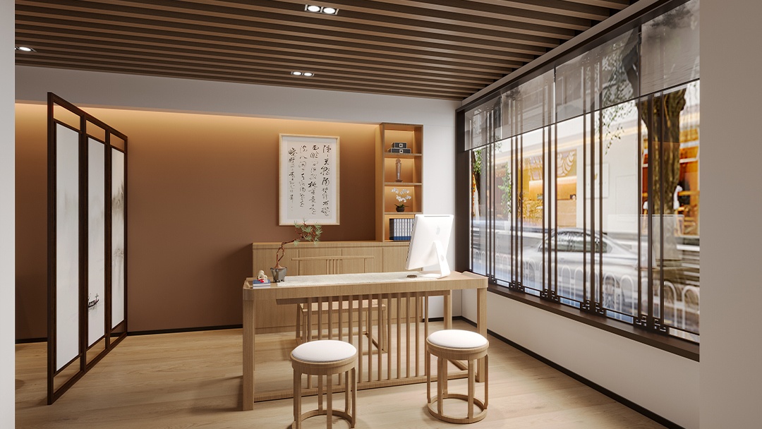 杭州社區(qū)便民中醫(yī)館裝修設(shè)計(jì),本案以“親和與可達(dá)”為核心,營(yíng)造如鄰里客廳般的溫馨就診環(huán)境。空間以淺原木與暖白色調(diào)為主,入口設(shè)開(kāi)放式咨詢臺(tái)與自助查詢屏,降低傳統(tǒng)醫(yī)館的疏離感。候診區(qū)結(jié)合階梯式書(shū)架與社區(qū)健康宣傳欄,座椅靈活組合便于交流。診療室采用磨砂玻璃隔斷,兼顧私密性與通透感。重點(diǎn)打造“藥香體驗(yàn)角”——展示常用草本標(biāo)本與代茶飲配方,整體以無(wú)障礙設(shè)計(jì)貫通動(dòng)線,構(gòu)建親切、明亮、功能復(fù)合的社區(qū)健康驛站。