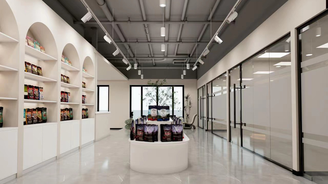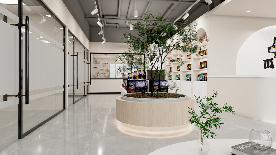 采用可移動(dòng)隔斷與多功能家具系統(tǒng),靈活劃分活體展示區(qū)、美容SPA區(qū)、寄養(yǎng)艙及零售區(qū)。例如,犬類活動(dòng)區(qū)配備智能防撞護(hù)欄與自動(dòng)喂食系統(tǒng),貓柜集成恒溫恒濕新風(fēng)模塊,確保寵物舒適度。