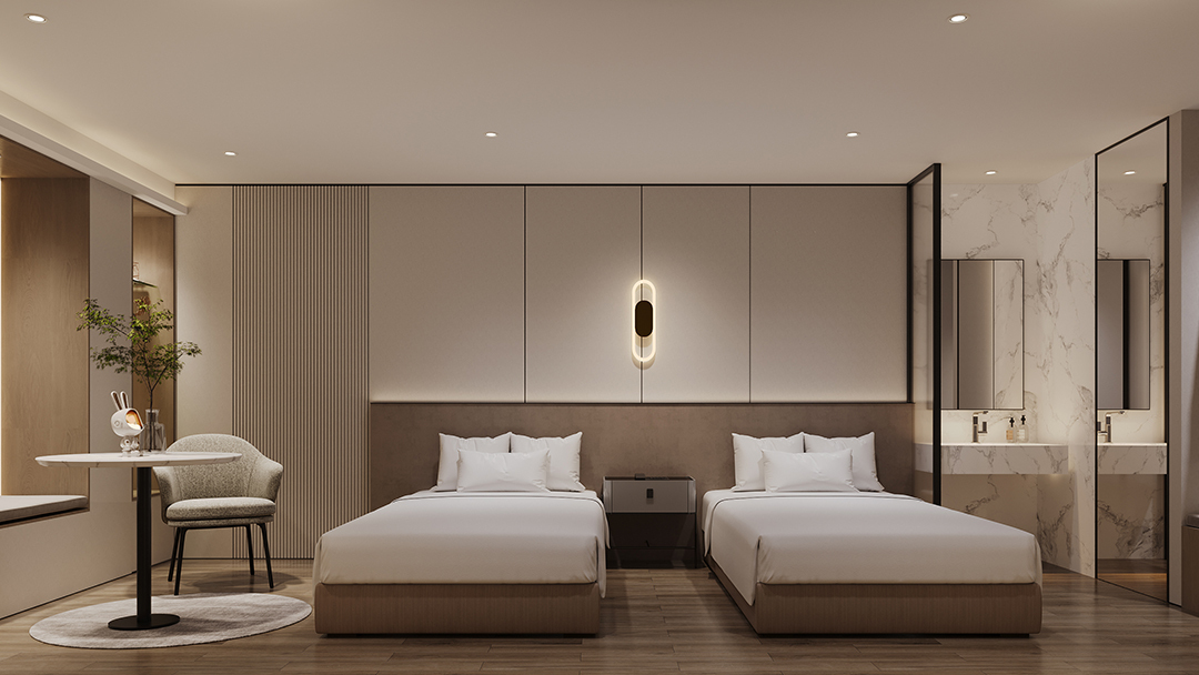 杭州商務(wù)會(huì)議酒店設(shè)計(jì)裝修,本案以“高效賦能·優(yōu)雅會(huì)議”為核心,將智能科技與東方商務(wù)美學(xué)深度結(jié)合。會(huì)議廳采用模塊化隔斷系統(tǒng),支持多場(chǎng)景靈活切換,并嵌入全息投影與同聲傳譯設(shè)備;墻面選用吸音波紋板材,確保聲場(chǎng)純凈。公共空間以淺木紋與深灰石材鋪陳,打造靜謐休憩走廊。重點(diǎn)設(shè)計(jì)“云端董事會(huì)議室”——270°環(huán)幕視野搭配智能會(huì)議記錄系統(tǒng),實(shí)現(xiàn)高效決策與杭州城市意象的視覺(jué)融合,重塑高端商務(wù)體驗(yàn)新標(biāo)準(zhǔn)。