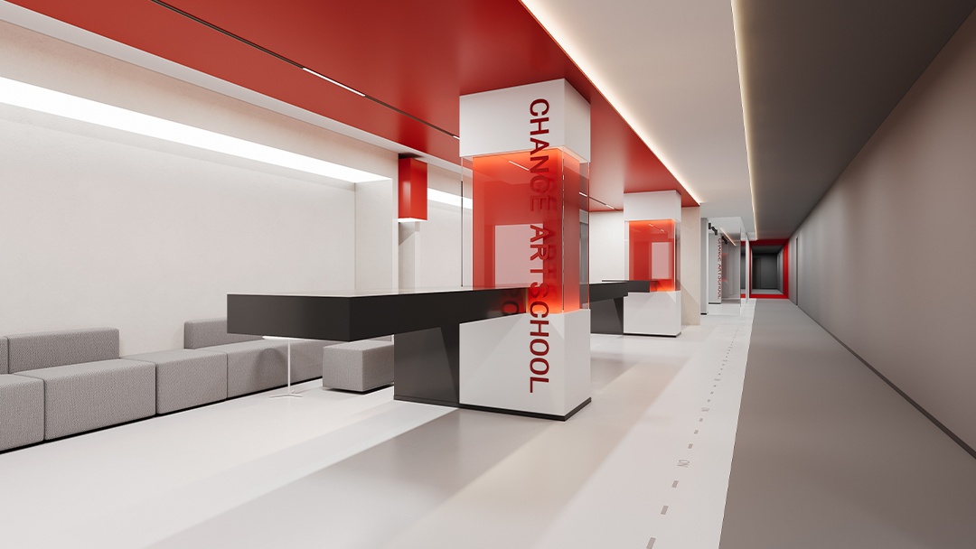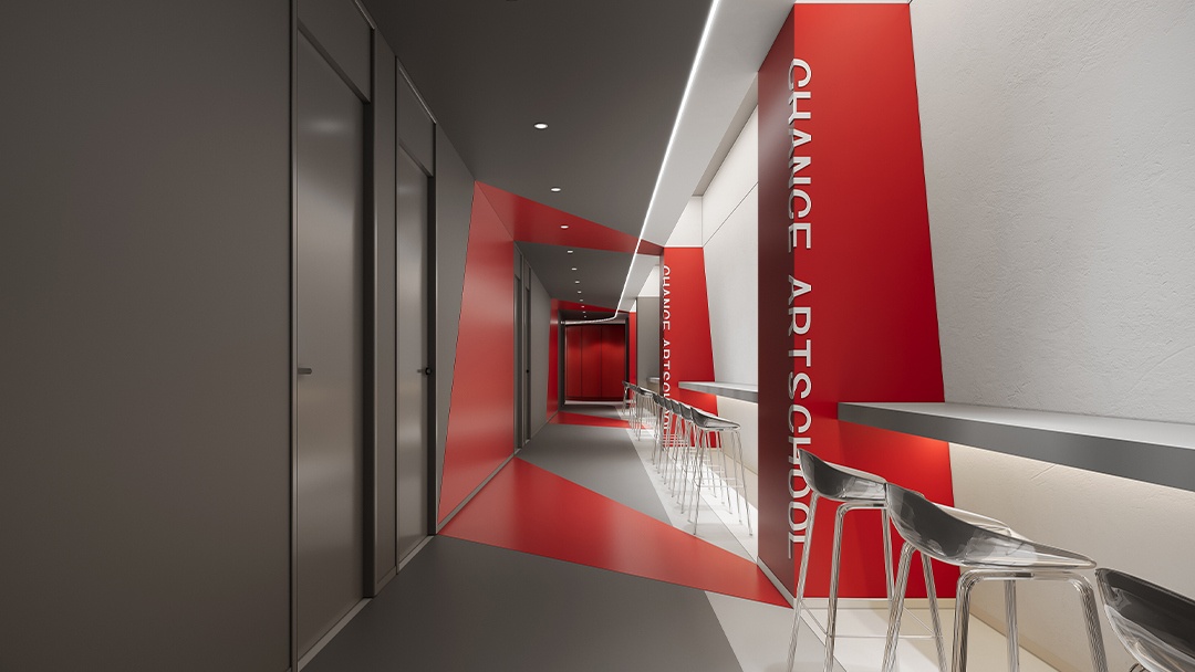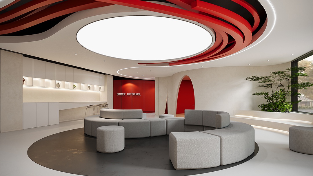 杭州藝術(shù)類培訓(xùn)機(jī)構(gòu)裝修設(shè)計(jì),本案將空間本身作為藝術(shù)教學(xué)媒介。墻面采用可擦寫涂層與磁性展示系統(tǒng),地面保留部分水泥肌理用于即興創(chuàng)作。定制可升降畫架與旋轉(zhuǎn)儲(chǔ)物模塊,實(shí)現(xiàn)空間場(chǎng)景自由重組。自然光通過(guò)漸變玻璃幕墻濾入,搭配軌道射燈系統(tǒng)滿足多媒介創(chuàng)作照明需求。中心挑空區(qū)設(shè)“創(chuàng)想階梯”,兼具作品展示、即興演講與休憩功能,營(yíng)造開(kāi)放流動(dòng)的藝術(shù)共創(chuàng)氛圍。