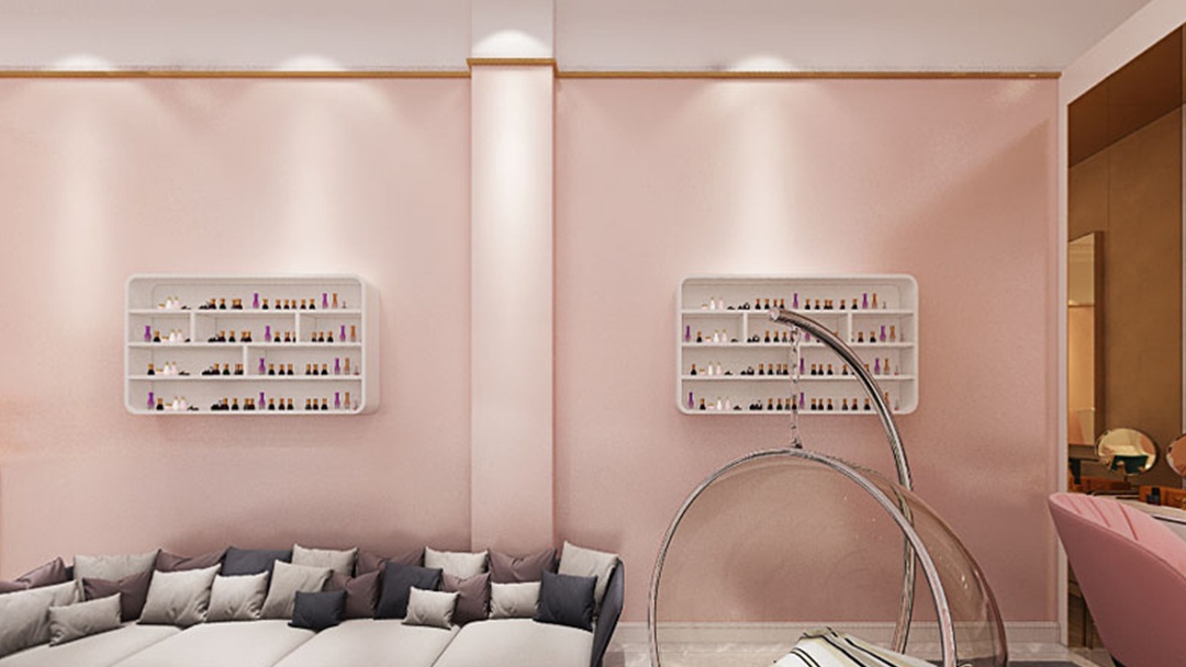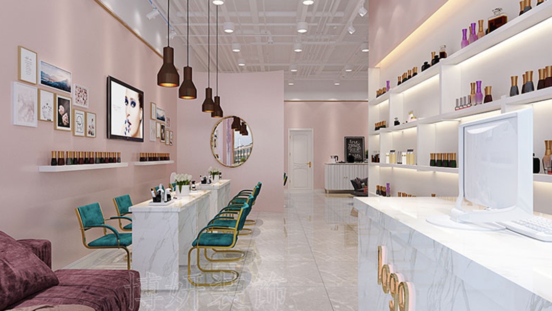 在杭州,一家以粉色為基調(diào)的網(wǎng)紅美甲店,以溫柔美學(xué)與自然生機(jī)碰撞出獨(dú)特魅力。整體空間,以低飽和度裸粉為主色,搭配奶油白與淺灰,營造出甜而不膩的夢幻氛圍;局部點(diǎn)綴珊瑚粉與玫瑰金細(xì)節(jié),增添精致層次感,讓每一位到店顧客瞬間沉浸于柔美世界。綠植,成為空間靈動的點(diǎn)睛之筆,沿墻面、窗臺與展示架自然生長,與粉調(diào)背景形成清新對話,既凈化空氣,又賦予空間呼吸感。設(shè)計特別設(shè)置ins風(fēng)拍照角,粉色絨面沙發(fā)、綠植墻組合,滿足顧客分享欲,讓美甲體驗升級為社交美學(xué)事件,成為杭州新晉打卡熱門地。