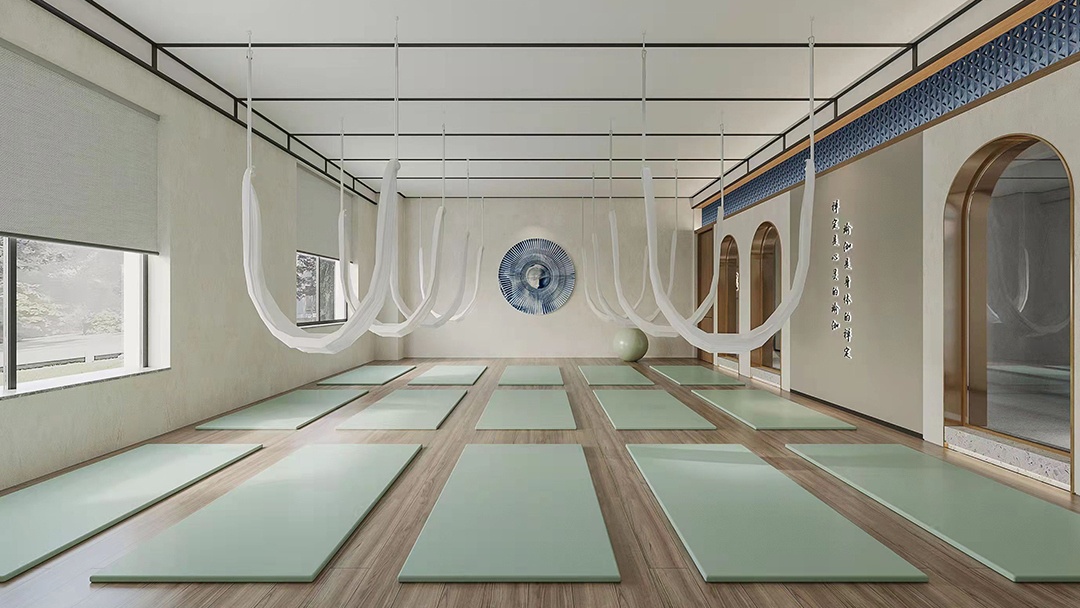 杭州瑜伽館裝修設(shè)計(jì),本案以「城市冥想綠洲」為定位,將自然元素與靜謐美學(xué)深度融合??臻g以淺原木與麻編材質(zhì)構(gòu)筑,弧形墻面嵌入鏤空竹格屏風(fēng),光影隨時(shí)間流轉(zhuǎn)而變幻。地面采用地暖復(fù)合地板,頂部懸掛仿藤編吊燈,營(yíng)造溫暖包裹感。重點(diǎn)打造「聲景冥想?yún)^(qū)」——定制穹頂聲學(xué)結(jié)構(gòu)結(jié)合隱藏式環(huán)繞音響,可模擬雨聲、鳥(niǎo)鳴等自然白噪音。臨窗設(shè)置懸空茶歇臺(tái),遠(yuǎn)眺城市景觀與室內(nèi)綠植墻相映,實(shí)現(xiàn)身心與自然的雙向聯(lián)結(jié)。