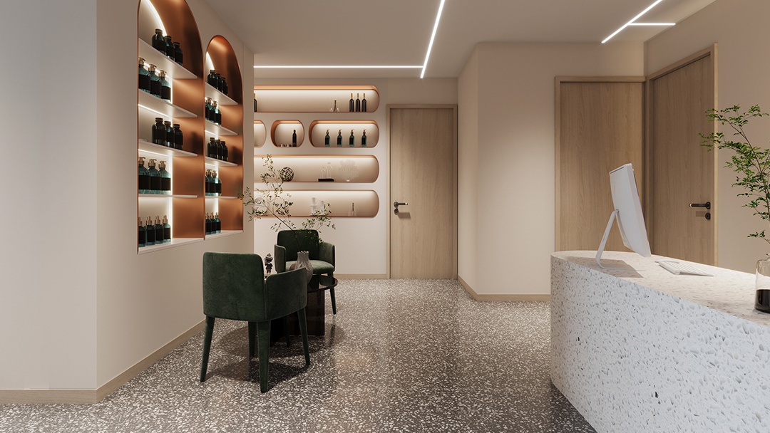 杭州現(xiàn)代簡約美容院,以大理石地面,勾勒精致美學空間。踏入其中,首先映入眼簾的便是那質(zhì)感卓越的大理石地面。其細膩的紋理,似天然水墨暈染,低調(diào)中盡顯奢華,為整個空間奠定了沉穩(wěn)大氣的基調(diào)。地面與簡潔流暢的線條墻面相呼應,搭配柔和的燈光,營造出靜謐而舒適的氛圍。沒有過多繁雜的裝飾,卻憑借大理石本身的獨特魅力,彰顯出高雅格調(diào)。在這里,大理石地面不僅是一種裝飾,更是品質(zhì)的象征。它耐磨易清潔,為日常運營提供便利;顧客行走其上,每一步都仿佛踏在藝術(shù)之上,身心也隨之放松。這家美容院,以現(xiàn)代簡約之姿,借大理石地面之韻,為杭州的愛美人士打造出一處專屬的精致變美空間。