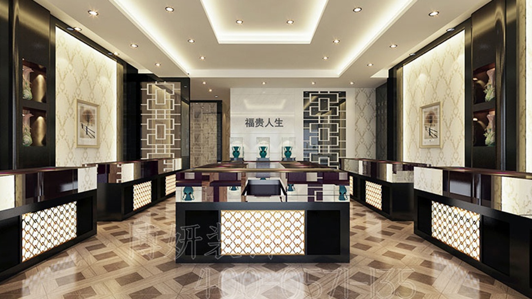 杭州新中式珠寶店裝修設(shè)計,以黑色基調(diào)驚艷亮相,演繹出別具一格的東方美學。踏入店內(nèi),黑色主調(diào)營造出深邃而神秘的氛圍,似在訴說著珠寶跨越時空的傳奇故事。中式格柵元素巧妙運用,或作為隔斷劃分空間,或裝飾墻面增添層次,其線條簡潔流暢,勾勒出傳統(tǒng)與現(xiàn)代交織的獨特韻味。筒燈,如點點繁星,精準地投射在每一件珠寶上,柔和而明亮的光線,將珠寶的璀璨光芒無限放大,使其成為空間中的絕對焦點。黑色展柜與燈光相互映襯,更顯珠寶的精致與華貴。在這里,傳統(tǒng)與現(xiàn)代完美融合,黑色基調(diào)賦予空間沉穩(wěn)大氣之感,中式格柵與筒燈的搭配,讓每一位顧客在靜謐雅致的環(huán)境中,開啟一場探尋東方珠寶之美的奇妙之旅。