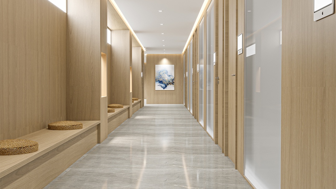 杭州宋韻文化中醫(yī)館裝修設(shè)計(jì),深度還原宋代美學(xué)中的簡(jiǎn)凈與意境。空間結(jié)構(gòu)取法宋式建筑的開闔韻律,采用原木榫卯框架與紙筋灰墻面,營造溫潤基底。藥柜區(qū)以青瓷色釉面磚為背板,搭配竹編藥屜與銅制稱量器具。整體以低飽和度色彩與自然光影,重構(gòu)當(dāng)代語境下的宋式醫(yī)藥空間體驗(yàn)。